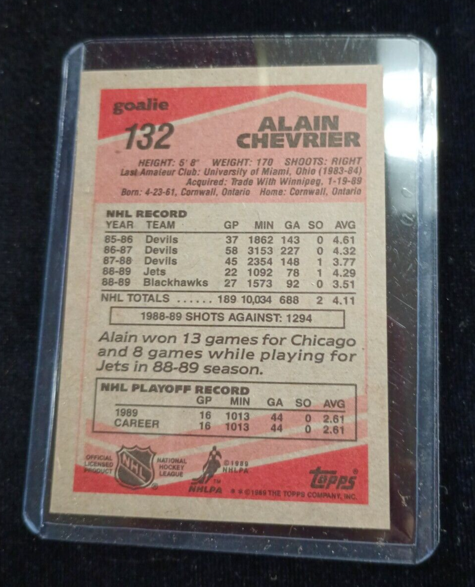 1989 Alain Chevrier Chicago Blackhawks Hockey Card
