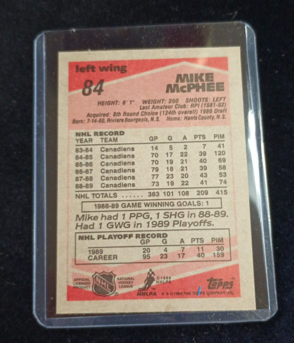 1989 Mike McPhee Montreal Canadiens Hockey Card
