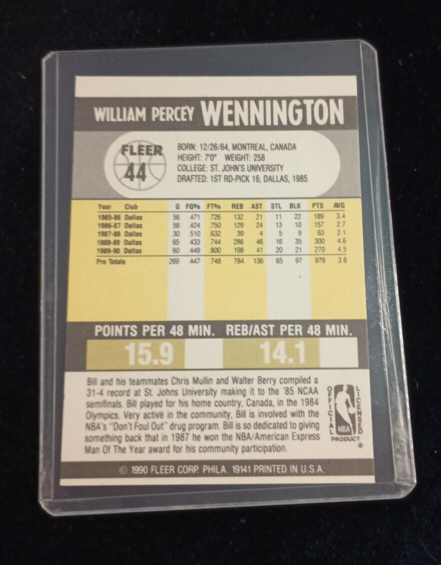 1990 Bill Wennington Dallas Mavericks Card