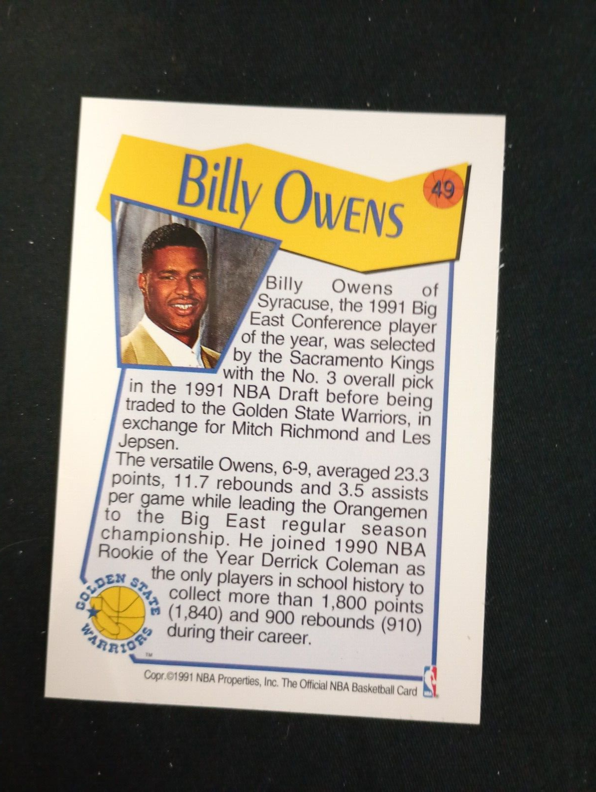 1991 Billy Owens NBA Draft Card