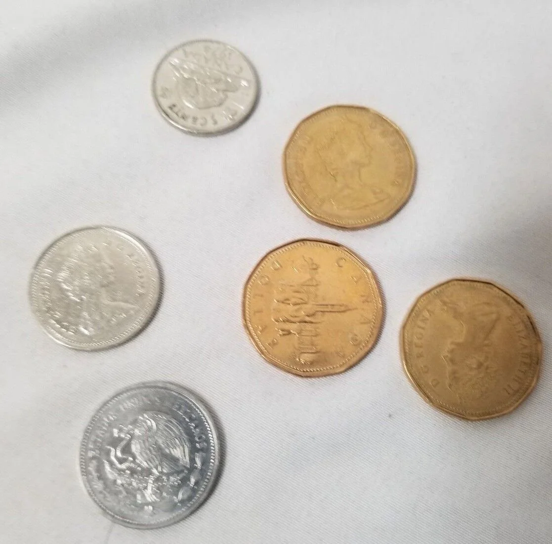 SHOP › '87, '88 Canadien Loonie, '92 Canadian Dollar, 78 5 Cents, 81 25 cents & a Peso Image 1 of 2 Image 2 of 2 '87, '88 Canadien Loonie, '92 Canadian Dollar, 78 5 Cents, 81 25 cents & a Peso $8.00 Limited Availability '87, '88 Canadien Loonie, '92 Canadian Dollar, 78 5 Cents, 81 25 cents & a Peso Purchase Added! '87, '88 Canadien Loonie, '92 Canadian Dollar, 78 5 Cents, 81 25 cents & a Peso